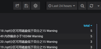 #从上图的结果我们可以得出两个结论,结论一Filters的Query它是或的关系不是与的关系,第二个就是你又多少个Query就会有多少个重复的level,这本来是去重后的三条报警信息,因为我们加了两个Query所以3*2变成了6条,一条严重级别一条磁盘报警。