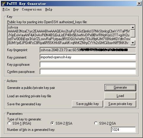 1.第一种,用putty生成了.ppk格式的私钥,但是我们是CRT或者X-shell等ssh工具,现在就需要进行私钥的转换了。比如说我现在putty生成的的私钥名称为test.ppk,那么如何转换成id_rsa格式呢,操作如下: